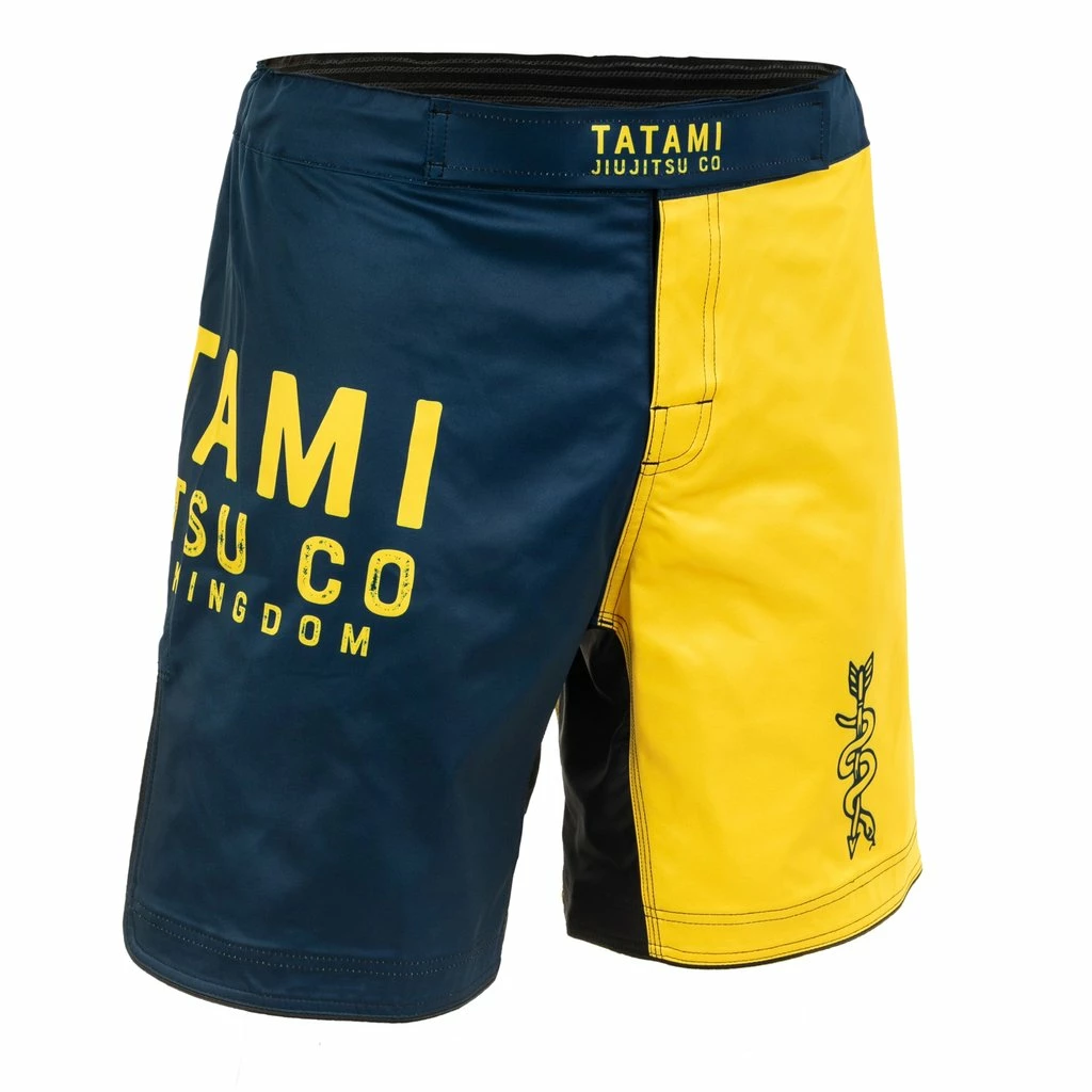 The Supply Co grappling shorts that feature the navy and yellow colour combination on each of the leg. The snake and arrow emblem is showcased on one of the leg with slick Tatami font on the other. Made from a four-way stretch polyester – the shorts are comfortable and breathable that hold up against tight grips and rolls.